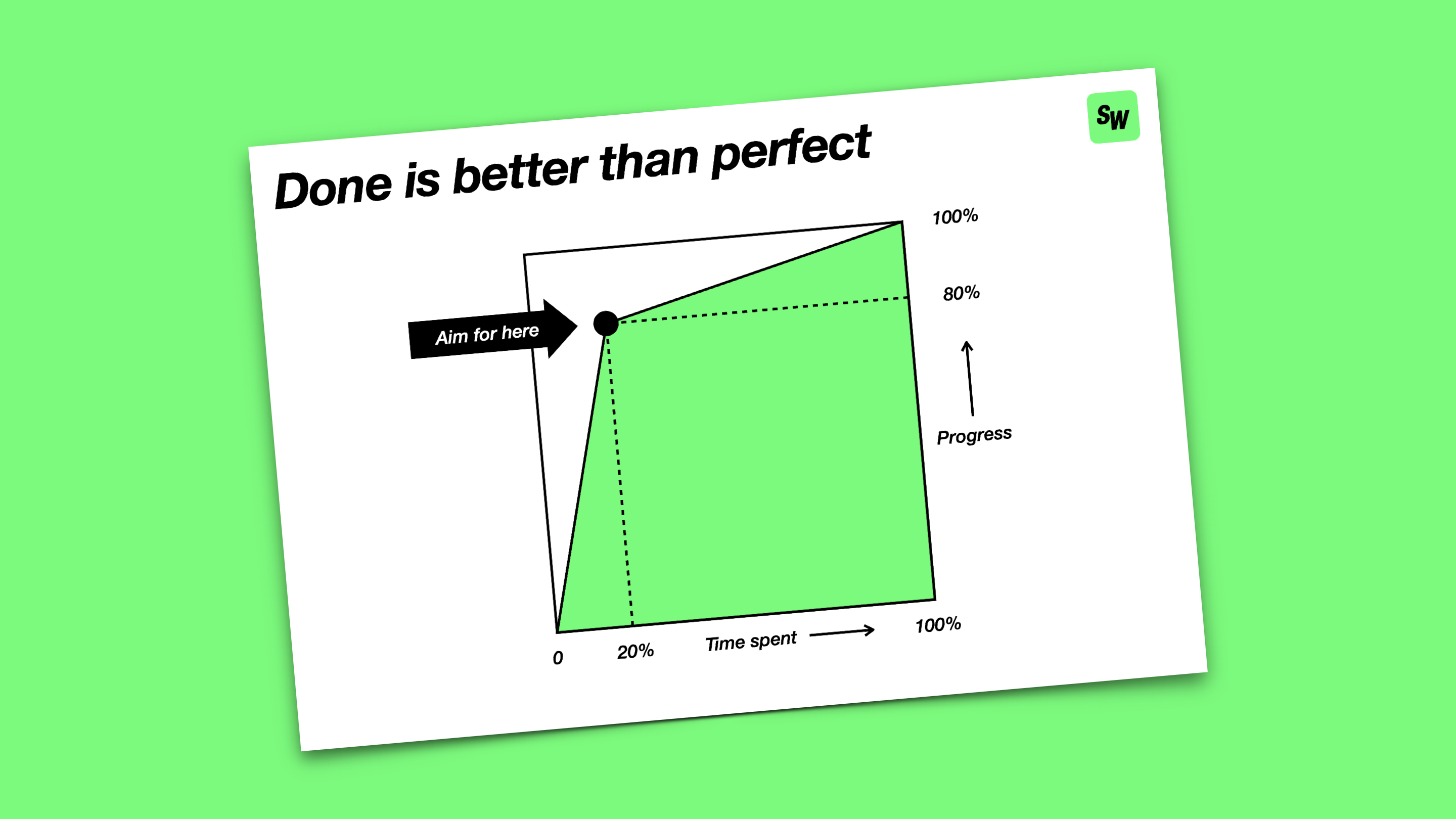 But in most cases what you have in hand will be good enough, and more time spent refining it will be hard to justify. After all, in the time it would take to reach 100% you could get four other projects from zero to 80% – and that’s a lot of impact to leave on the table.